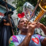 “A fotografia tem me levado a lugares onde posso aprender cada vez mais, seja no exercício do olhar, seja na interação com as pessoas. E no Bloco Gigantes da Lira tudo acontece ao mesmo tempo. As fantasias criativas, os palhaços, os pernas-de-pau, os foliões de todas as idades, a banda animada, tudo isso deixa qualquer fotógrafo super interessado em registrar esta alegre e contagiante passagem do bloco pelas ruas de Laranjeiras.